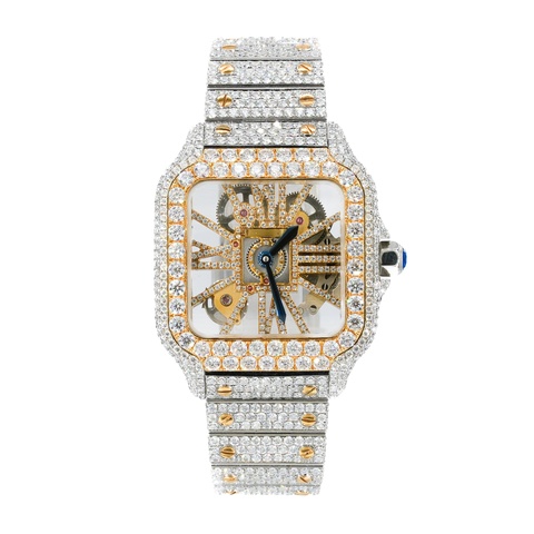 Reloj deportivo de lujo para hombre Moissanite Diamond Tester Bisel de acero inoxidable Reserva de energía Fase lunar VVS Diamond Alarm Hollow