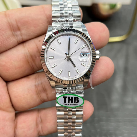 Reloj de fecha mecánico automático de lujo Unisex de primera calidad, puntero de cristal de zafiro, banda de acero inoxidable, versátil, de moda