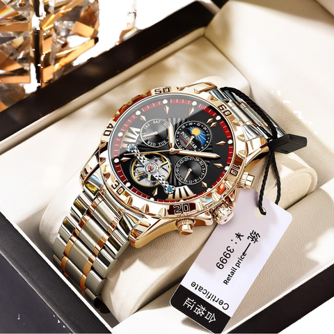 High-End lüks spor iş çekicilik izle paslanmaz çelik kasa safir kristal mekanik hareketi suya dayanıklı güç